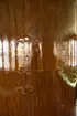 Lavering av Fritz von Dardel föreställande interiör från gästgivargård i Småland, daterad 1844. I en säng ligger tre personer, en man värmer sina händer över elden i den öppna spisen. Vid ett bord sitter en man och skriver i en bok, en äldre kvinna står bredvid.