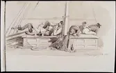 "På kappsegling 5 Aug. 1857". Lavering, tusch av Fritz von Dardel.