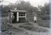 Enligt senare noteringar: "Familj vid egenhändigt byggd stuga, troligen utanför Munkedal." (BJ)
