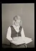 584 Brunsviks Folkhögskola. En ung kvinna sitter och läser och röker pipa.
