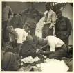 Ett stort antal soldater samlade för vila framför militärtält, 1940. Bildtext vid foto: "Efter fälttävlan" Foto skannat ur album: 'Minnen från Min kommistid 1940-1944'