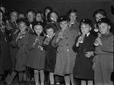 "Mjölkdrickning genom kobbelrör är slagnummer. Uppskattad skolpropaganda under mjölkveckan", Uppsala 1938
