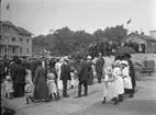 Folksamling läser löpsedlar framför Stockholms-Tidningens annonskontor vid Stureplan 6 i samband med andra världskrigets utbrott.