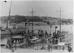 Bilden visar en monitoreskader till ankars på Karlskrona redd 1889 2:a klass pansarbåtarna monitorerna JOHN ERICSSON, TIRFING och TH0RDÖN.