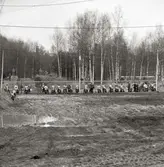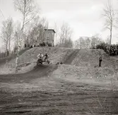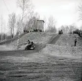 Premiärtävling, Stock car, 24/4 1955, Falköpings motorbana. Här leder bil 4 (Lars Bjurde, Göteborg). N:r 34 är Enok Stennert, Stenstop i en Ford 1937.