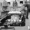 Dieselelektrisk motorvagn. Stockholm - Nynäs Järnväg, SNJ XBFo3 3. Dieselmotor i maskinrummet.