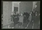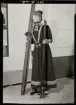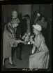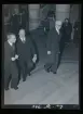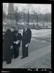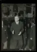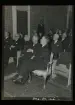 En man håller tal på trappan framför Gustav Vasa i stora hallen, Nordiska museet.