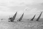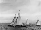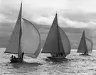 Besättningen på 6-L21 KLARA STJÄRNA under Sandhamnsregattan 1938. Fr v t h Georg "Malajen" Sohlberg, Rolf Gullichsen och Harald "Flaxen" Zetterström" (namnuppgifterna från Liewendahl m.fl.: Sexornas Jakt, Helsingfors 1992, s 96).