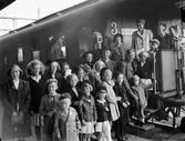 "Upsala ångqvarns personal på utfärd till Furuvik", från avfärden på Uppsala centralstation, Uppsala 1942