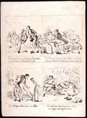 Köksa får en kyss av en matros. Kokerska iakttar genom nyckelhål. Blyertsteckning av Fritz von Dardel.