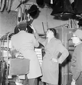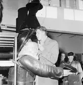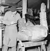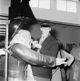 En man hälsar på Rosenbom (fattigbössa) vid Amiralitetskyrkan i Karlskrona.