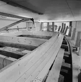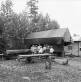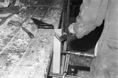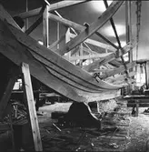 Bygge av SOFIA LINNEA i Börje Anderssons verkstad i Roslagskulla.Björn Lindroth? sågar timmer.