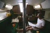 Konstruktören Peter Norlin i ruffen på en Albin Cumulus.