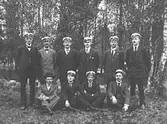 Givaren Lilly Nygrens syster Signe Andreasson (född 1908) som står i nedre raden, andra från vänster. Fässbergs kyrka, 1920 - 30-tal.