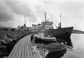 Medföljande text: "Lossning av sill vid den nyanlagda lastkajen i Fjällbacka 1958".