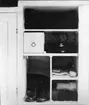 Sjöbefäl övervakar arbete med livbåt. En matros sitter i båten och en står på fartygsdäck och tittar mot fotografen.