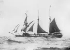 [från Fotobeskrivning:] "3-mast. skonertskeppet BORE av Halmstad efter omriggning. Skeppet hade ingen anknytning till Rödlöga."