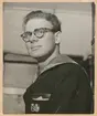 Bilden föreställer en skräddare och frisör ombord på minfartyget Älvsnabben under långresan 1966-1967 i klädda uniform.