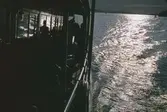 Skeppsholmen, korsningen Svensksundsvägen/Västra Brobänken, utsikt mot Södermalm. Båten af Chapman.