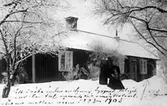 Valdeborg Johansson har släktbesök, 1915 - 1920-tal. Från vänster: Brodern Knut Hagberg, Valdeborg och sittandes är mostern Josefina "Fina" Eriksson. Bilden är tagen i Nårunga i Västergötland, där Valdeborg arbetade som lärarinna 1915 - 1952. Ur Valdeborg Johanssons fotoalbum.