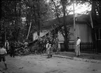 "Trädgårdsgatan utanför Östgöta nation blockerad av en nedblåst trädstam"