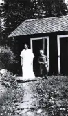 "Kommer från morgonbadet i tvättstugan på Taberg, syns ju på sonen att vi blir plåtade" (enligt bildtext i album).