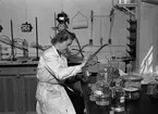 Verkstadschef Ivar Eriksson och professor The Svedberg i laboratoriet, Fysikalisk-kemiska institutionen vid Uppsala universitet