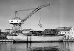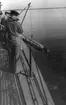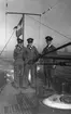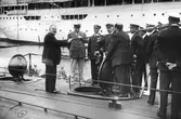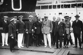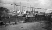 Ubåtarna förtöjda utsidan av Klas Horn och pansarskeppet Gustav V, Berga Örlogsskolor 1962