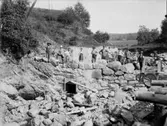 Telekabel dras genom vägtrumma under bro på F 2 Hägernäs, 1944.