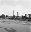 Utsikt från Operaterrassen mot Strömkajen, Norrström och Skeppsholmen. Skärgårdsbåtar ligger vid kajen. Hästar med vagnar står längs Strömgatan.