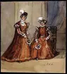 "Två kvinnor i Historiska dräkter 1560." Akvarell av Fritz von Dardel