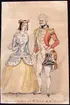 "Costumebal på kungliga slottet d. 4 mars 1851". Par i 1700-talsdräkt. Akvarell av Fritz von Dardel.
