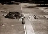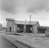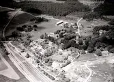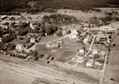Övre bilden: Till vänster står stationshuset från 1898, till höger syns det ursprungliga stationshuset från 1889. Reklam: Kanolds Choklader, Helsingborgs Galoscher, Göteborgs Kex, Axa, Arboga Margarin. Nedre bilden: Längst till vänster står godsmagasinet, följt av 1898 års stationshus och sedan det ursprungliga stationshuset från 1889. Till höger syns ett antal godsvagnar på spåren.