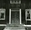 Fotografi från expedition till Spetsbergen. Motiv av man som poserar framför hus vägg.