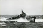 Jagaren Södermanland 1958 På sin jungfrufärd anländer jagaren till Strängnäs. Bild 1: Jagaren har lagt till mot Ångbåtsbron. Hitom jagaren ses slupen Granliden. Den gick i pendeltrafik mellan Ångbåtsbron och Granliden nära Djupvik. Café och badplats för de lite äldre strängnäsborna. Bild 2: Akterskeppet med rännor för minutläggning. Vid återbesök ca tio år senare var vattenståndet så lågt att en av propellrarna gick i botten. Det blev också Södermanlands sista besök i Strängnäs.