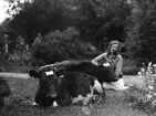 oläslig rubrik, 22 maj 1967 bonde och ko i hage