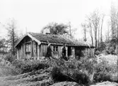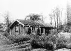 "Kalle och Lisas" ryggåsstuga, Höverö Gods, Grolanda. De gamla var kammarherre Focks speciella favoriter. Varje morgon brukade han besöka dem och fick då alltid höra Lisa berätta att "Kalle ä den snällaste mänska på jola". "Ja, det kommer an på den goda havregröten från köket", skrattade kammarherren."