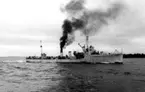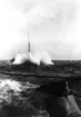[från fotobeskrivningen:] "FINNGRUNDET flyttas från Rosenvik till Wasavarvet" "3.6.1970"