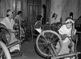 "J. U. F.-flickor tävla på Salsta i linspånad", Lena, Uppland 1936