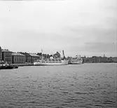 Stockholm. Vy från Skeppsbron, fartyg vid Skeppsbrokajen.
