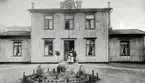 Skara station omkring 1915. Vykort. Motivet är tecknat.