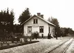 MÄNNISKOR SAMLADE VID RÅBÄCKS JÄRNVÄGSSTATION.