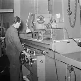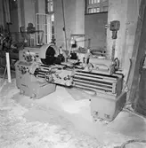 Svarvning i verkstaden, den 13 februari 1958 Swendsén o Wikström Värmepannefabrik på Brynäs. Företaget köptes upp av Svenska Järnvägsverkstad och fick 1955 namnet ASJ-PARCA.