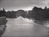 "Öfversvämning 1926 Munkedal Järnväg. Vid Bajan." "Oscar Appelgrens hus på Bajan."