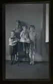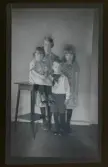 "Familjen Fredrik Karlsson, Fogelstad" Porträtt av fyra barn, syskon.