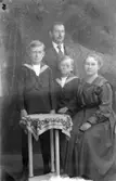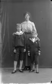 Enligt text skriven på glasplåten: "Släktingar i Tun 1920." Enligt notering: "J.J.:s kusin med fru och son som blev präst, Tun 1920".