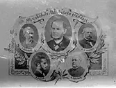 Tjänstemän för Valbo Härads Folkbank i Stigen. Sittande från vänster: Magnus Andersson, Säteriet Östra Stigen troligen kassör, Johannes Olsson hemmansägare i Bråten Ödeborgs socken troligen ordförande i styrelsen, Sigrid Andersson dotter till Magnus Andersson bankbiträde,. Stående till vänster: J R Edgren sedermera kyrkoherde i Högsäter tillhörde bankstyrelsen till omkring 1918, Adeline Schander bank och posttjänsteman hennes make hade anställning vid yllefabriken, Brynolf Bergmark kommisarie eller kronolänsman Hagen Ödeborg.