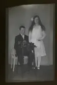 "Bruden Liljeholm, Väsby" Porträtt av ett brudpar.