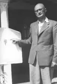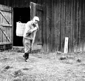 P J Wikström, Krusmon, förevisar en mjölkkolla.