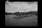 Segelbåtar på vattnet intill Lidingöbron, vy mot Ropsten.